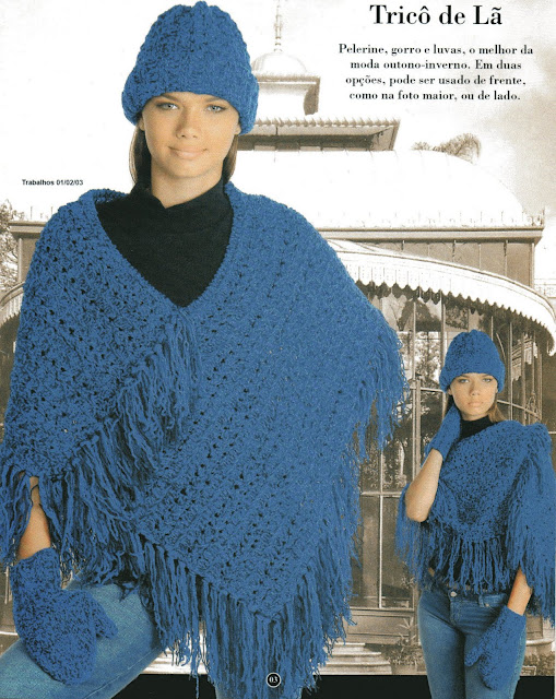 Pelerine Gorro e Luva em Roxo e Azul